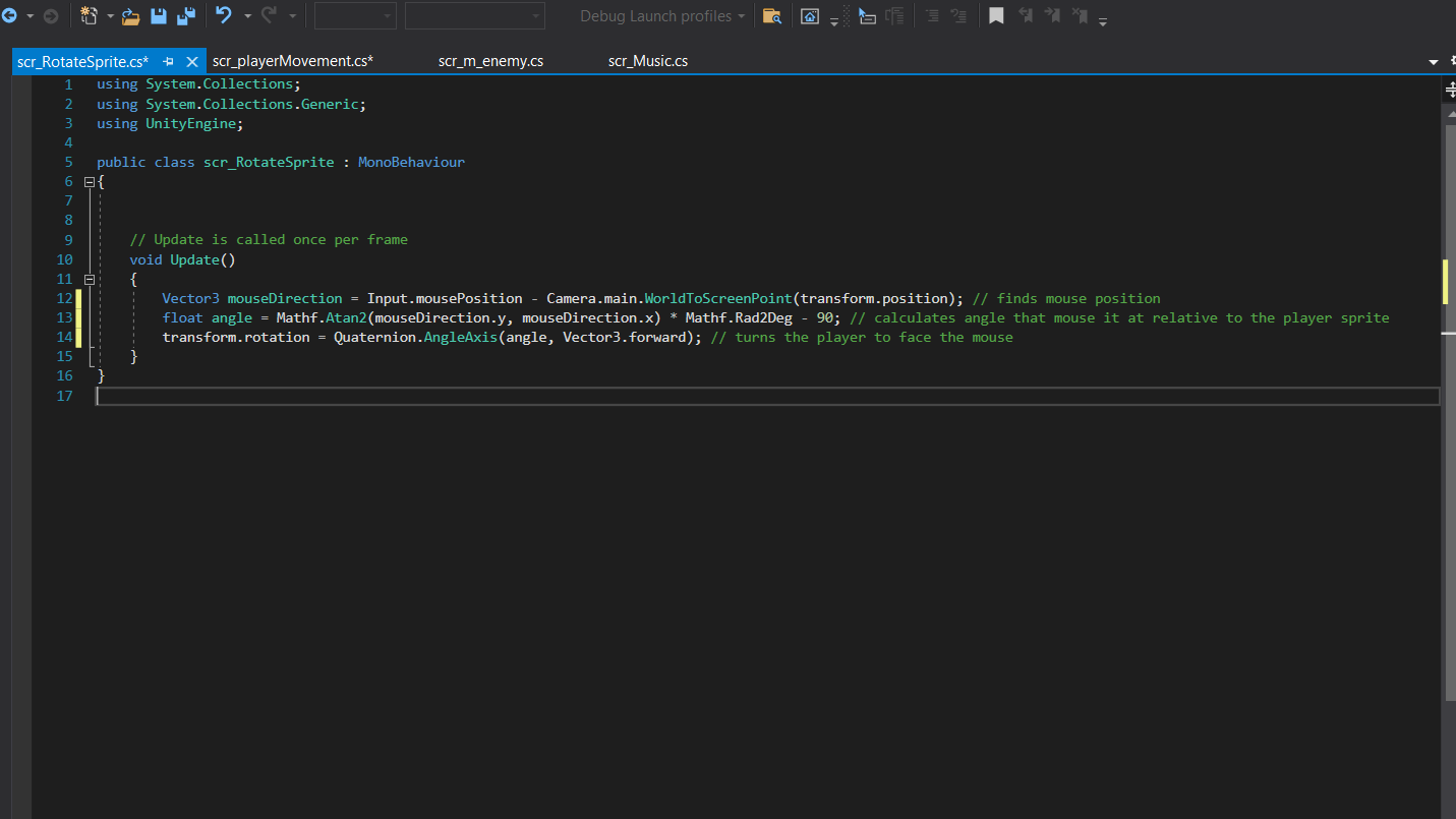 This script turns the player to point towards the mouse and reticule to allow them to face the enemy they are aiming at.