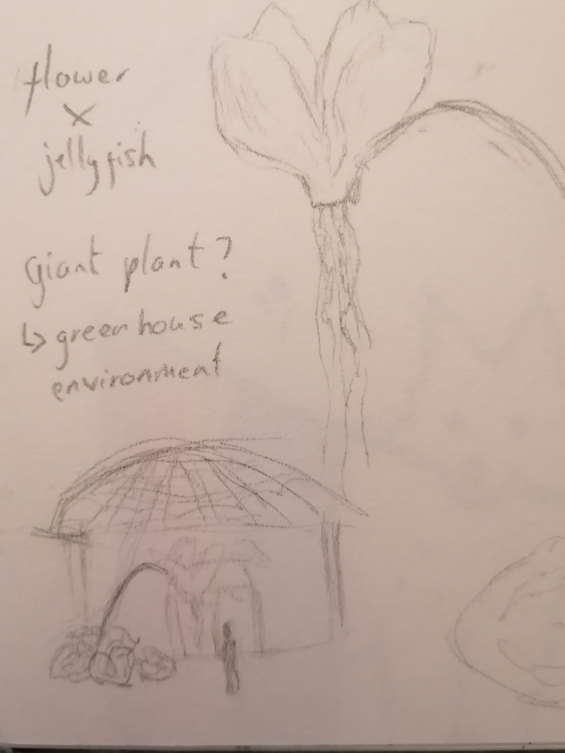 For the giant plant the environment would be a large fantasy greenhouse full of plants and magical looking objects, I’d use particle effects to create fireflies or magic sparks around the main plant asset I created.