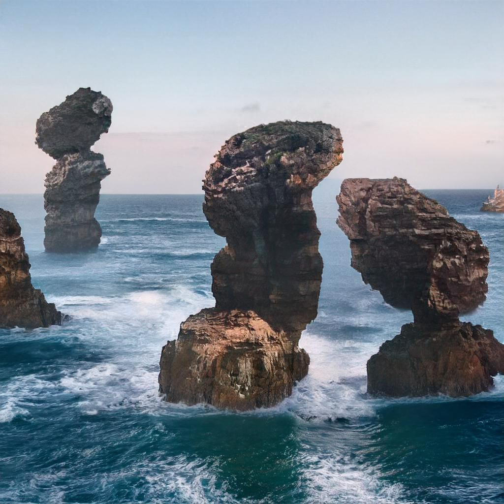 I generated these images using an Nvidia’s AI landscape painter that allows you to sketch in different parts of a landscape like rocks, the sky and water as I knew I wouldn’t be able to find reference images that looked the way I imagined this landscape.