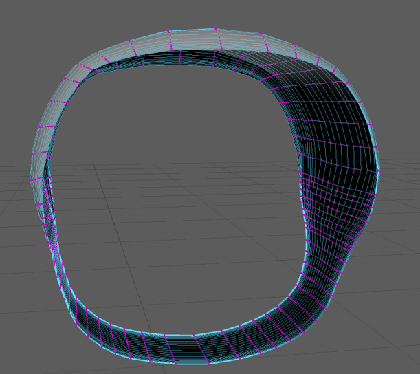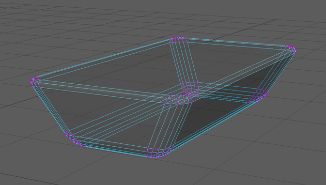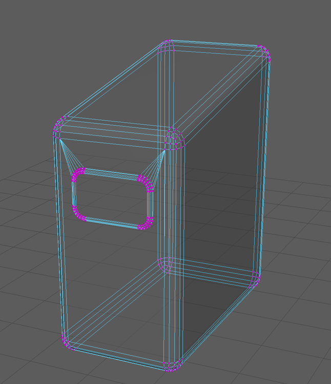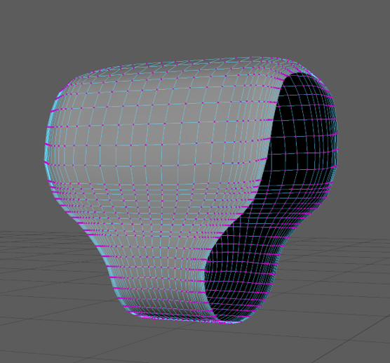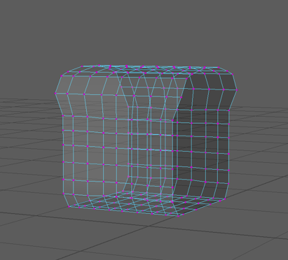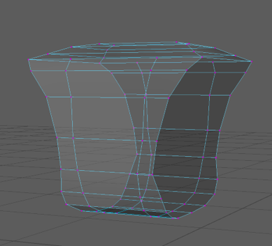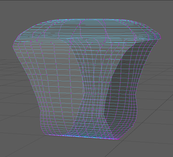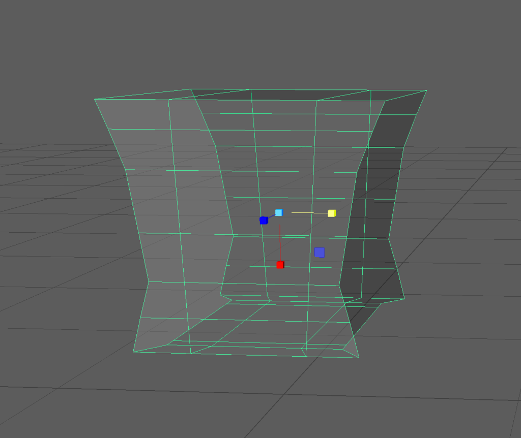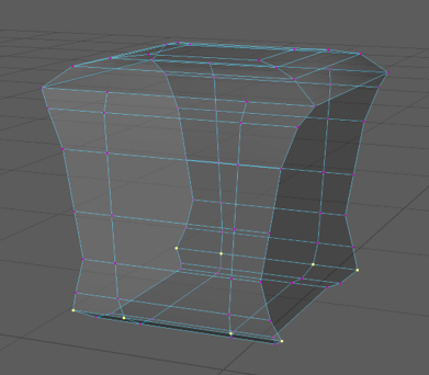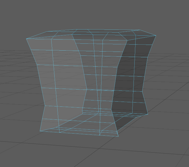To avoid encountering this problem again I created edge-loops around the new square tube shape then adjusted the vertices to be closer to the shape I was aiming for. Then I selected the vertices on the bottom third of the object and scaled them down on the x axis and then scaled down the vertices above them row by row to create a smooth curve between the two widths.