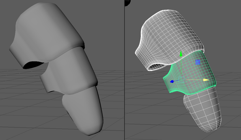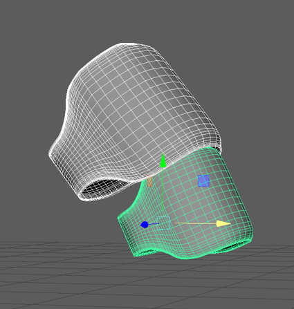 To make the leg covers curve in on the top edges I selected the edge vertices and scaled them down on two axes using symmetry on the z axis to adjust both sides evenly. This created my finished shape for the leg covers.