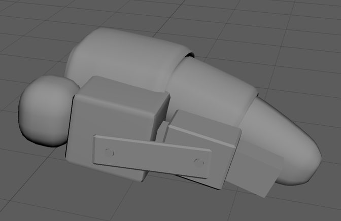 This is the first model I made for the interior of the leg but it was very high poly due to the rounded end, that I made by using the add divisions function on a cube, and the brackets on the side made it hard to fit into the leg covers so I made a new lower poly version by extruding a cube.