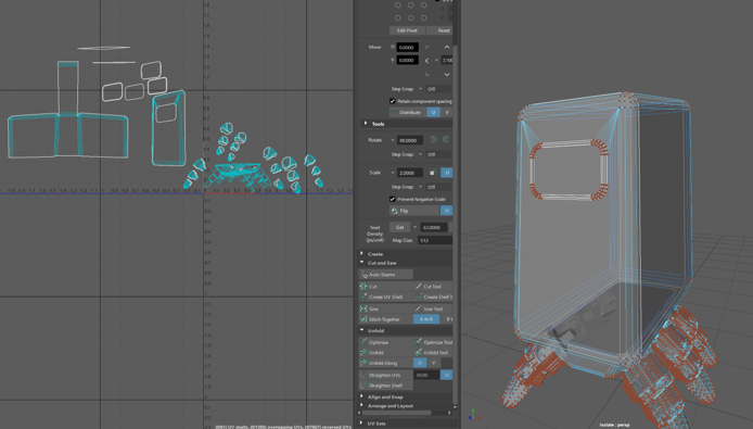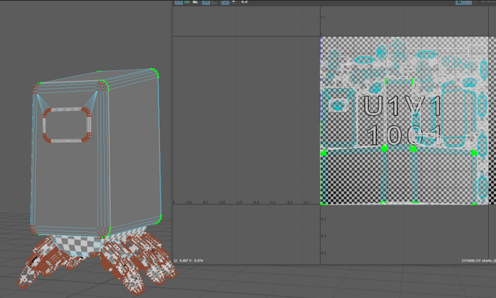 To reduce the poly count of the legs I used the mesh reduce function however this made the faces odd shapes which then made the shape look really spiky when it was put into substance painter so I redid this step and reduced it by a lower percentage which upped the poly count but allowed for a smoother shape.