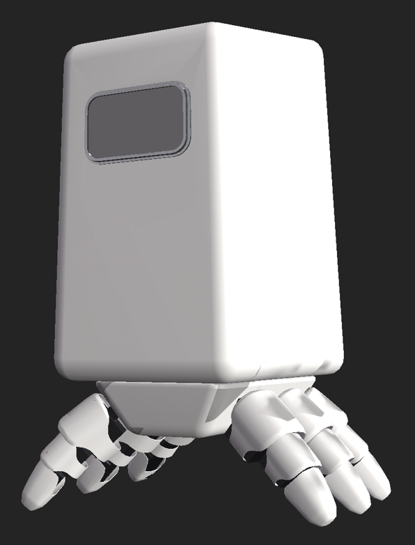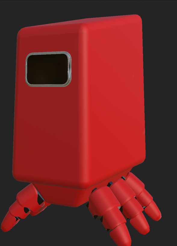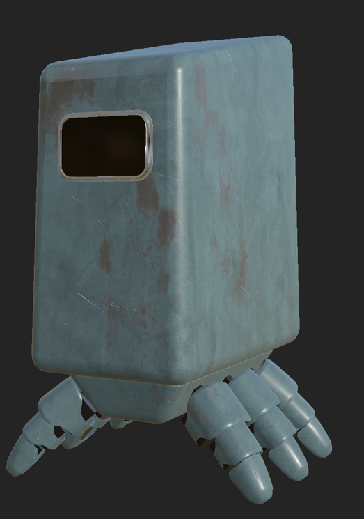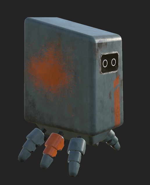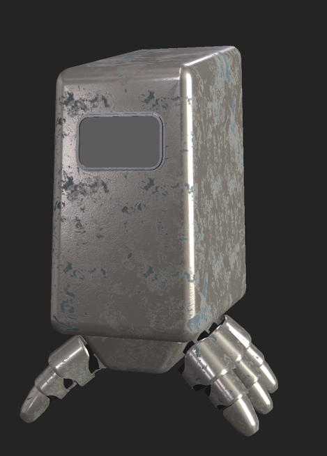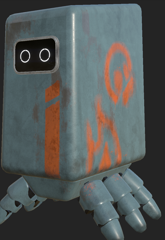 I painted basic textures onto each different texture with the body and legs being a white matt plastic, a metal edge to the face screen and black internal components for the legs as my original idea was for the robot to be black and white however I didn’t like the way it looked and when I asked my peers they also agreed the body needed a more interesting colour.
