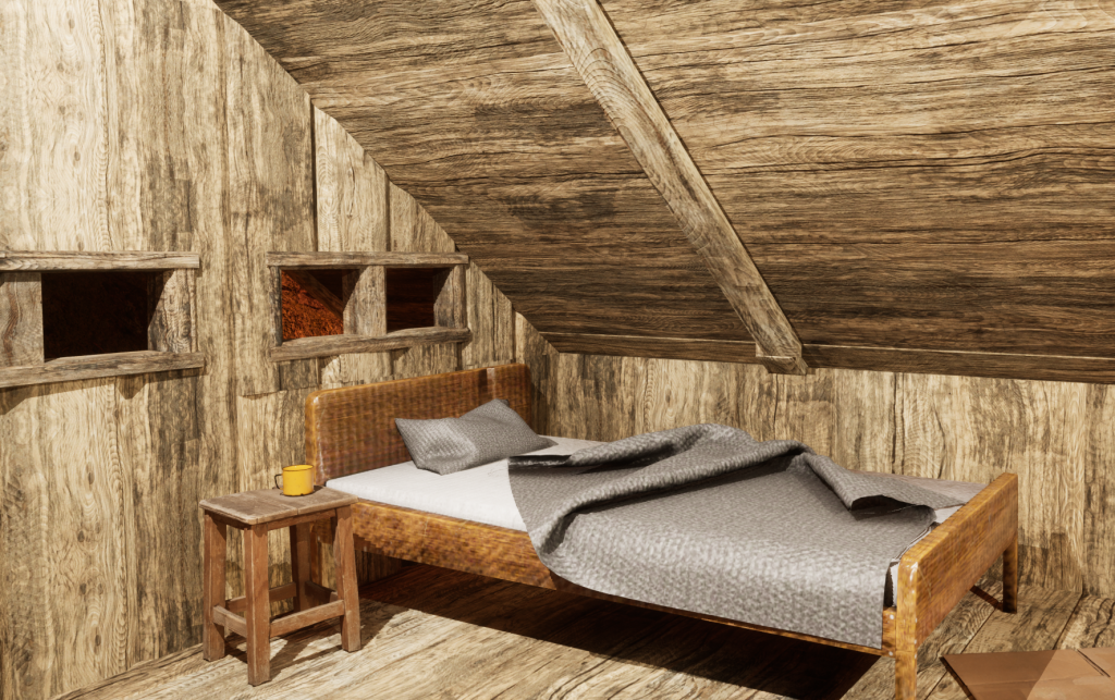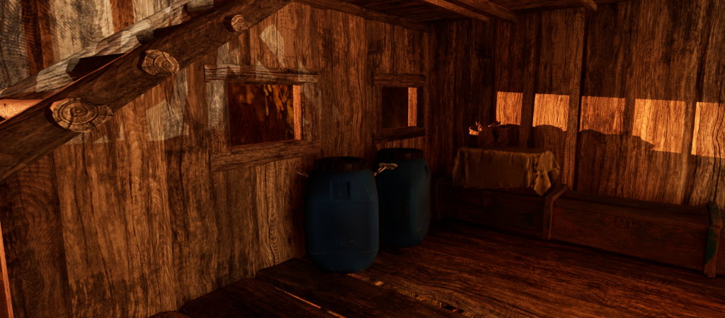 If I were to create the cabin again, I would adjust some of the parts that make it up as there are some that overlap and cause flickering on the textures.