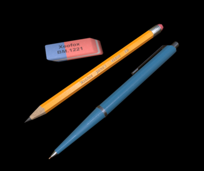 Mikhail Antonov (2022) Stationery: pencil,pen and eraser (lowpoly) [3D Asset] Available online: Stationery: pencil, pen and eraser (lowpoly) – Download Free 3D model by Mikhail Antonov (@xeofox) [4737f21] (sketchfab.com)